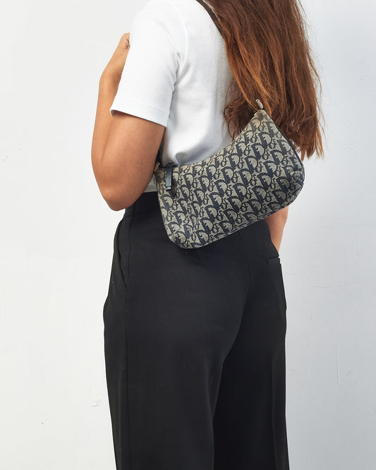 Dior Vintage Blue Oblique Canvas Shoulder Bag