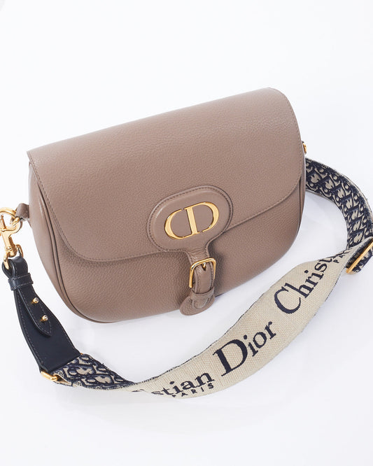 Dior Taupe Grained Leather Large Bobby Bag with Oblique Canvas Strap