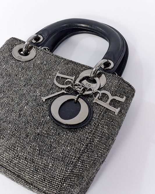 Dior Vintage Black Tweed Mini Lady Dior Tote - NO STRAP