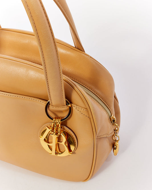 Dior Vintage Beige Leather Top Handle Bag with Dior Charm