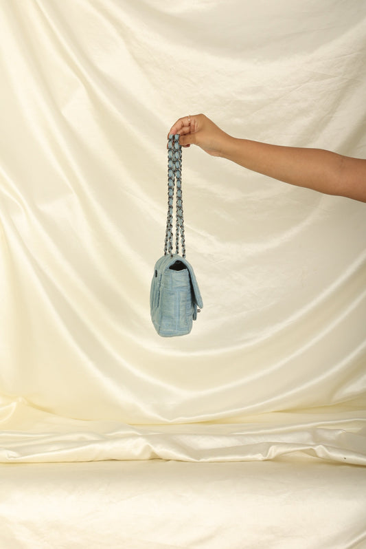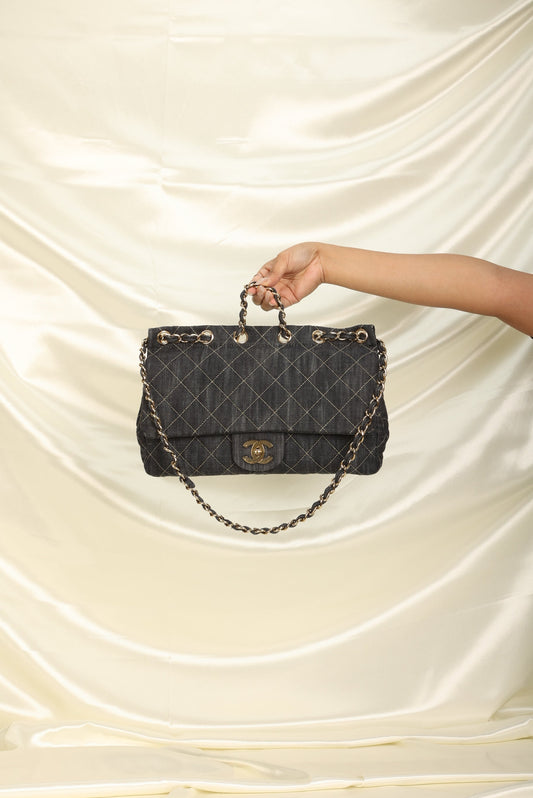 Extremely Rare 2016 Chanel Denim Perfume Embroidered Medium Flap