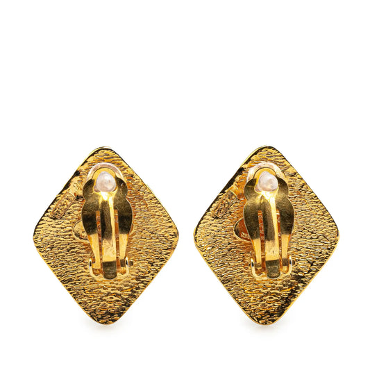 Gold Chanel Gold Plated Acrylic CC Square Clip On Earrings