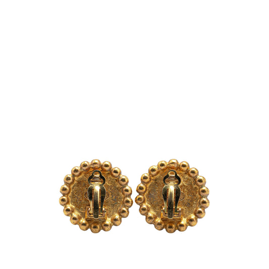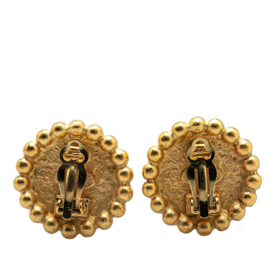 Gold Chanel Gold Plated 31 Rue Cambon Round Clip On Earrings