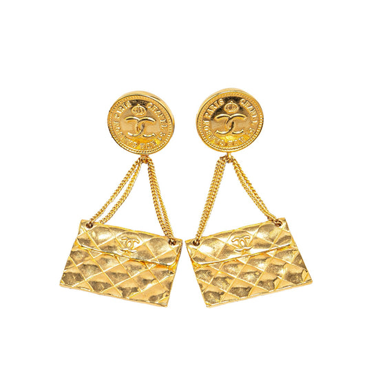 Gold Chanel Gold Plated CC 2.55 Flap Bag Clip On Earrings