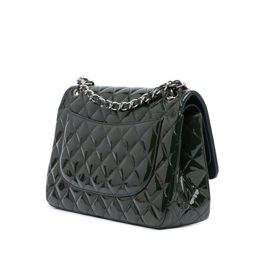 Green Chanel Jumbo Classic Patent Double Flap Shoulder Bag