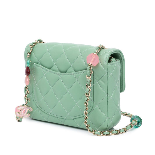 Green Chanel Mini Square Lambskin Candy Hearts Flap Crossbody Bag