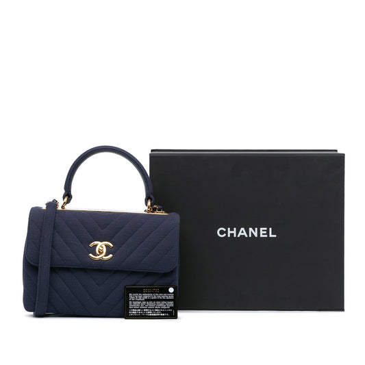 Blue Chanel Small Caviar Chevron Coco Top Handle Bag Satchel