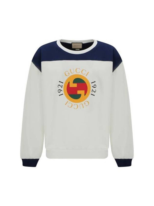 Gucci 1921 Logo Print Cotton Jersey Sweatshirt Ivory Blue
