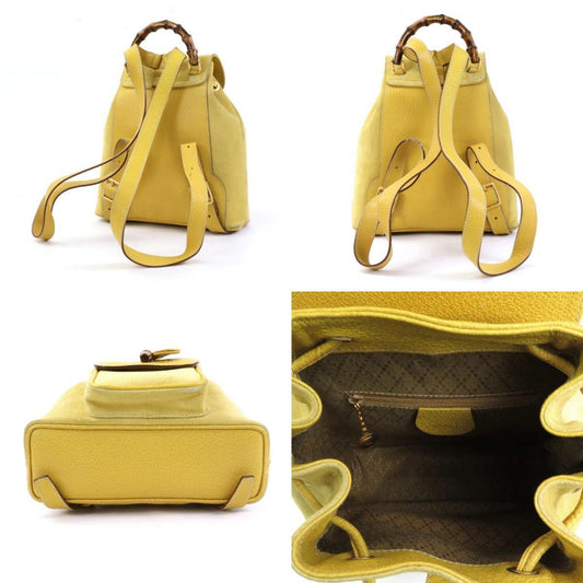 GUCCI Backpack Bamboo Suede/Leather Yellow Gold Women's e56051f