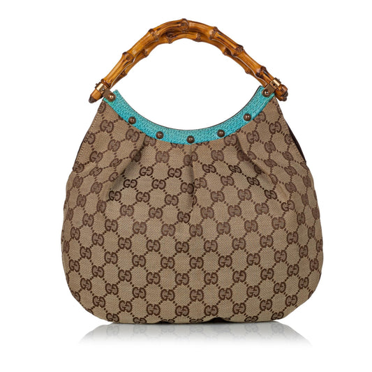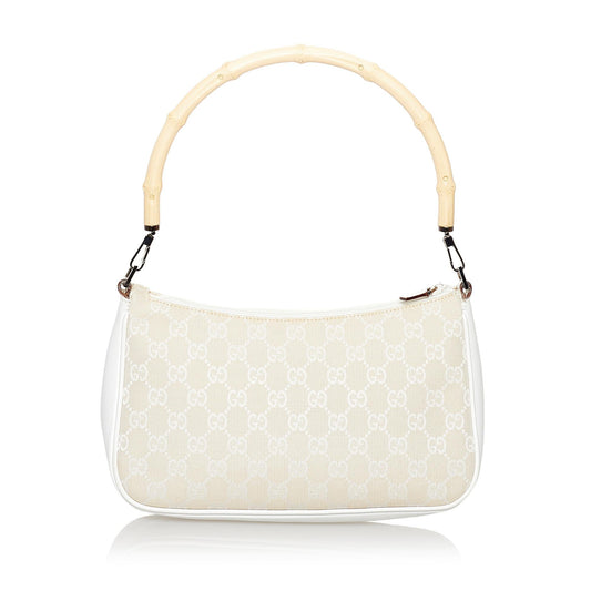 Gucci Bamboo GG Canvas Leather Shoulder Handbag