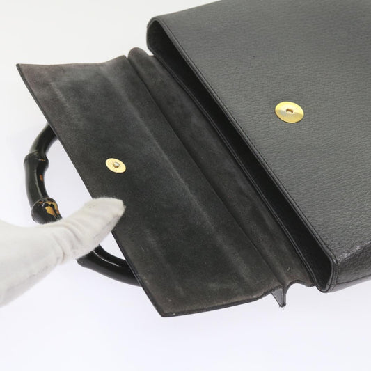 GUCCI Bamboo Hand Bag Leather Black Gold 002 123 0260 ep5446