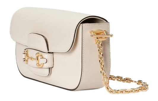 (WMNS) Gucci Horsebit 1955 Retro Gold buckle Leather Shoulder Messenger Bag Small White Classic 602204-1DB0G-9022