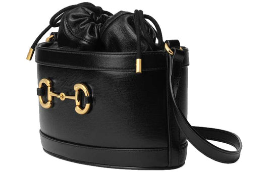 (WMNS) Gucci Horsebit 1955 Retro Gold buckle Leather Drawstring Shoulder Messenger Bag Black 602089-1IV0G-1000