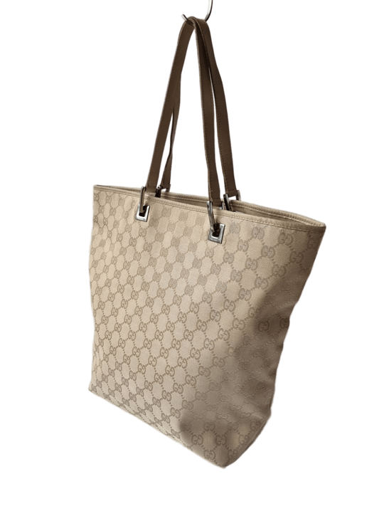 Gucci Beige Ebony GG Canvas Tan Leather Sukey Large Tote Bag