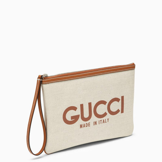 Gucci Beige Canvas Monogram Clutch Wristlet Small