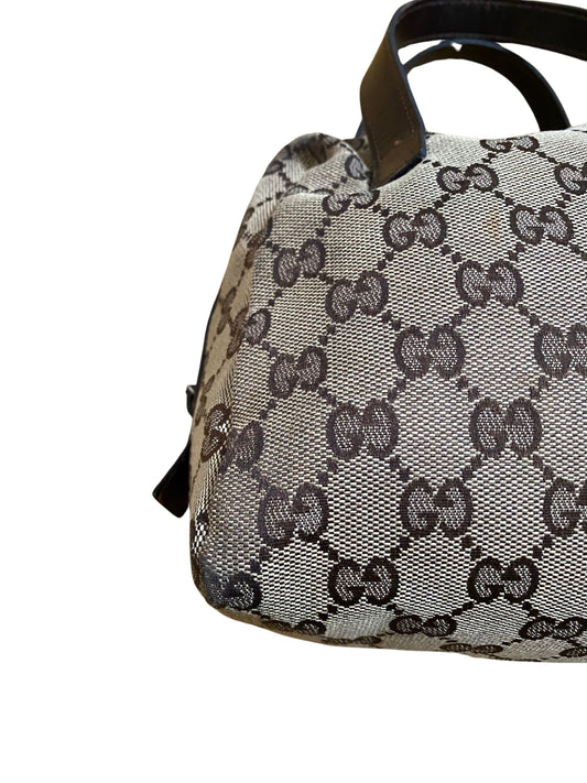 Gucci Beige & Dark Brown Jacquard & Leather Bag