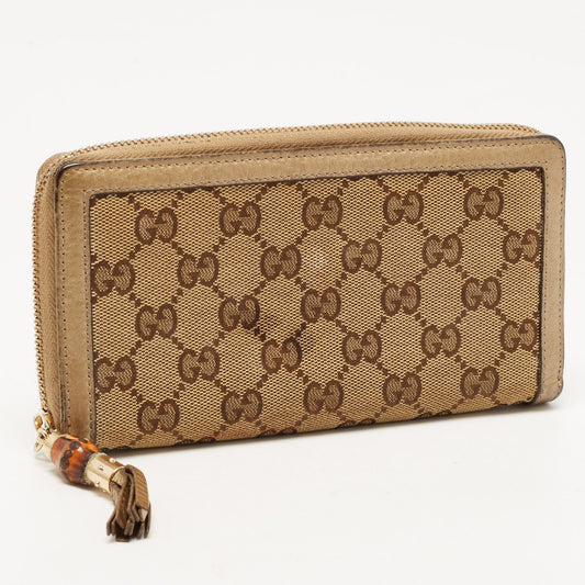 GUCCI Beige GG Canvas and Leather Bamboo Tassel Zip Around Wallet