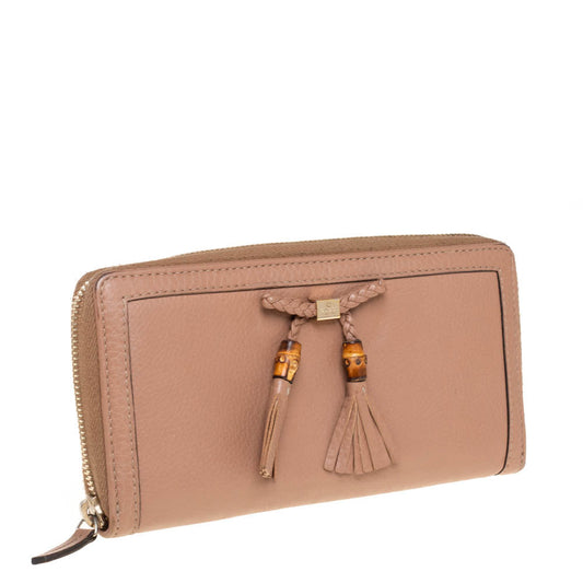 Gucci Beige Leather Bamboo Tassel Bow Zip Around Wallet