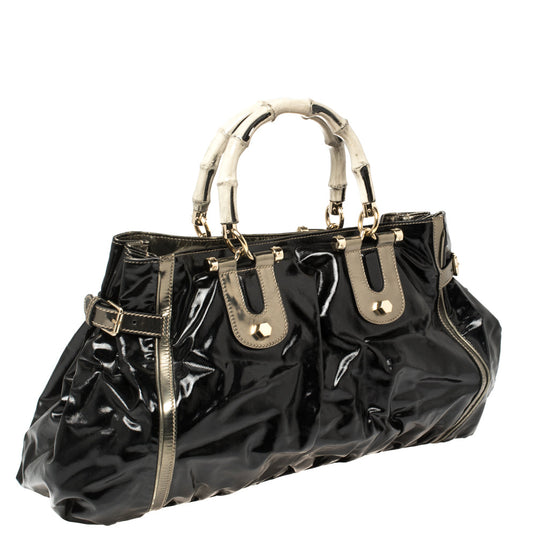Gucci Black Gg Canvas And Patent Leather Jolie Tote