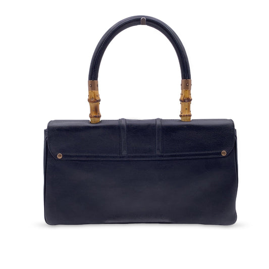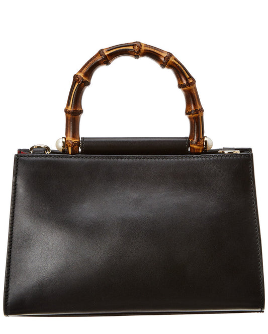 Gucci Black Leather Small New Bamboo Top Handle Bag