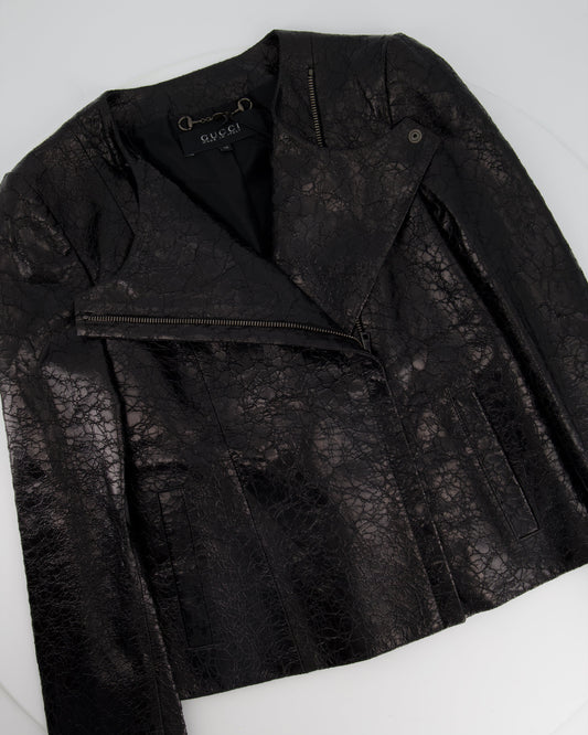 Gucci Black Lambskin Leather Jacket with Cracked Leather Effect Size IT 38 (UK 6)