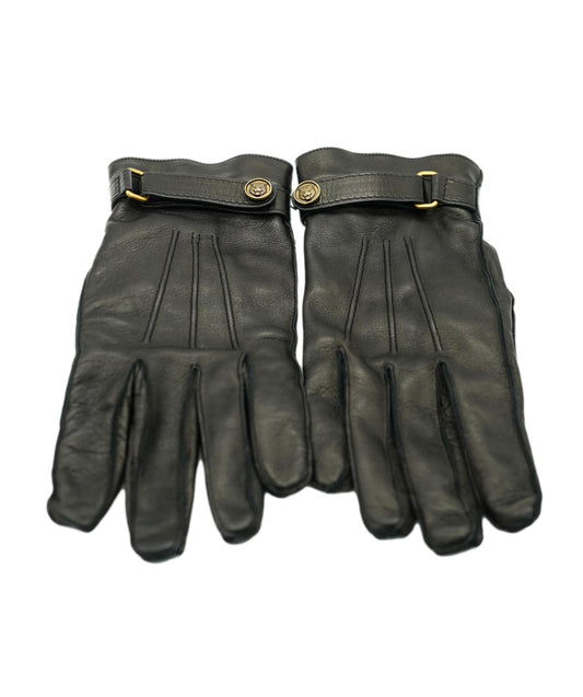 Gucci Black Leather Embossed Belt Gold GG Buckle Size 80/32