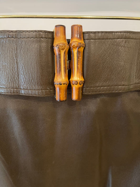 Gucci Brown Leather Skirt with Bamboo Belt Detail Size IT 44 (UK 12)