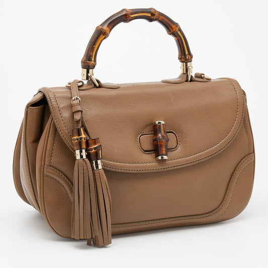 Gucci Brown Leather Large New Bamboo Tassel Top Handle bag