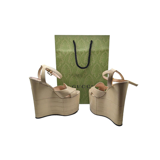 Gucci Calfskin Sally Platform Wedges Sz 37.5