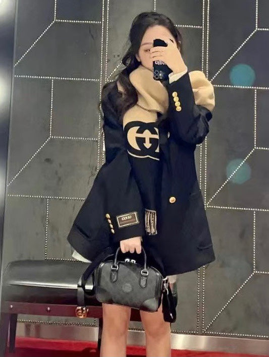 Gucci CAMEL BEIGE AND BLACK WOOL WITH INTERLOCKING G SCARF 200 CM