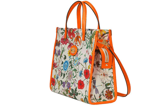 (WMNS) Gucci Metallic Interlock Double G Flowers Printing Canvas handbag White / Orange / Multicolor 550141-9ZIBX-8868