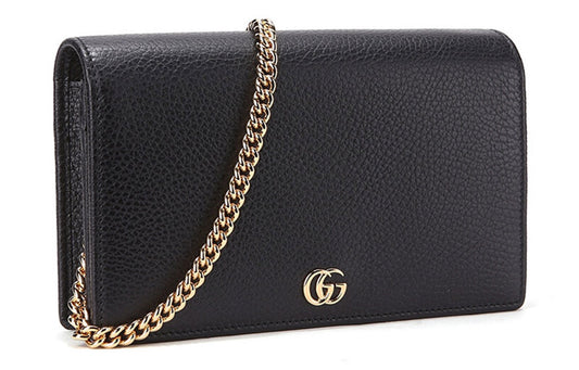 (WMNS) Gucci Marmont Leather Mini Chain Bag 'Black Gold' 497985-CAO0G-1000
