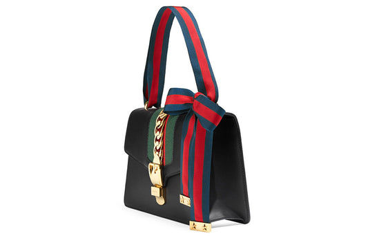 (WMNS) Gucci Sylvie Gold buckle Stripe Webbing Bow Wide Version Leather handbag Small Black 421882CVLEG-8638