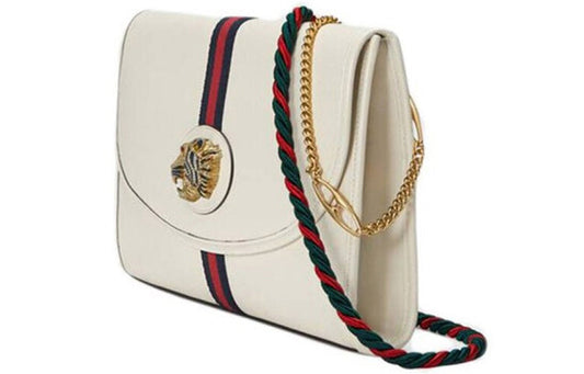 (WMNS) Gucci Rajah Enamel Tiger Head Stripe Webbing Leather Chain Shoulder Messenger Bag White Retro 564697-0OLKX-8609