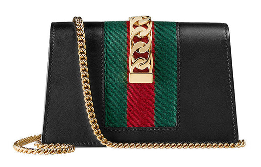 (WMNS) Gucci Sylvie Gold Buckle Stripe Webbing Mini Black Handbag 470270-9AAQG-8720