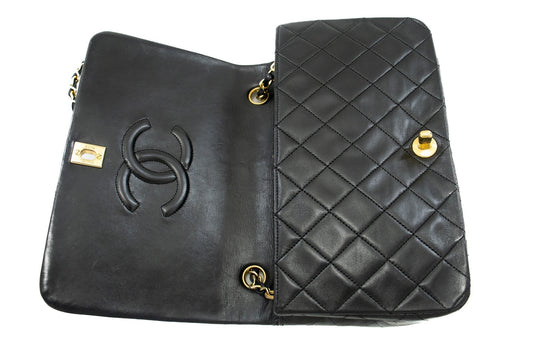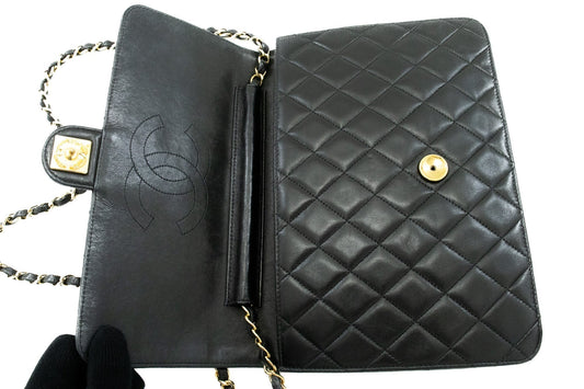 CHANEL Full Flap Chain Shoulder Bag Crossbody Black Quilted Lamb k64