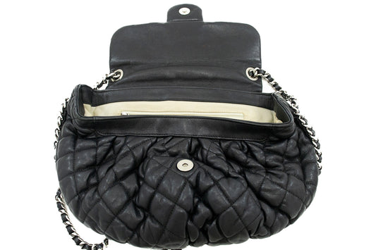 CHANEL Half Moon Chain Shoulder Bag Crossbody Black Quilted Flap j18