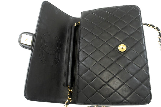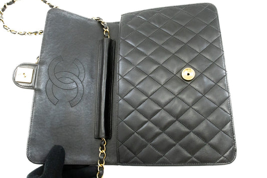 CHANEL Full Flap Chain Shoulder Bag Clutch Black Quilted Lambskin k19