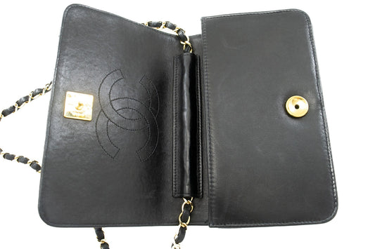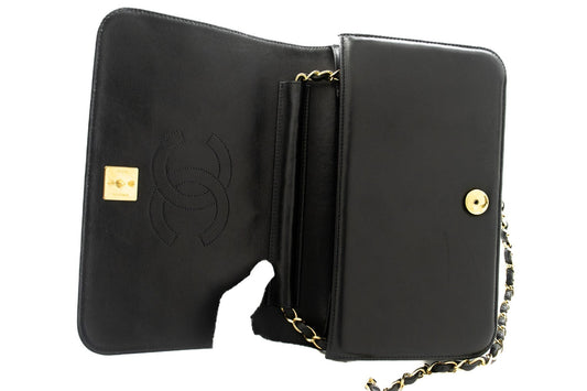 CHANEL Full Flap Chain Shoulder Bag Clutch Black Quilted Lambskin j67