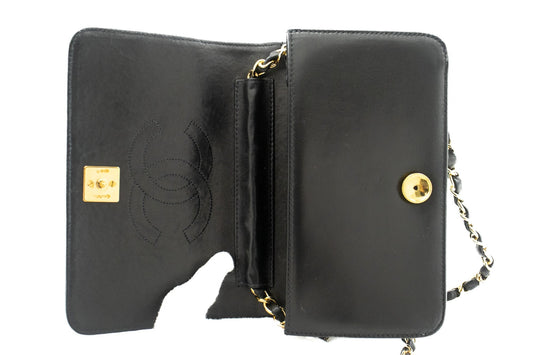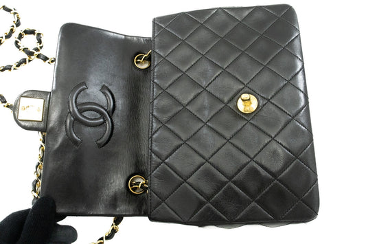 CHANEL Small Chain Shoulder Bag Clutch Black Quilted Flap Lambskin d22