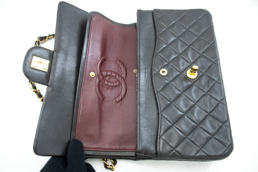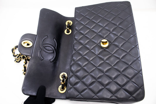 CHANEL Classic Double Flap 9" Chain Shoulder Bag Black Lambskin j57