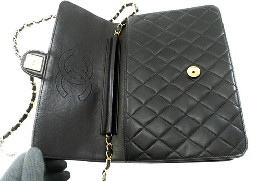 CHANEL Full Flap Chain Shoulder Bag Clutch Black Quilted Lambskin k09