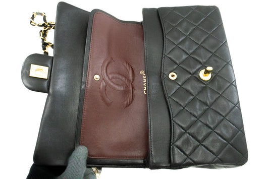 CHANEL Classic Double Flap 10" Chain Shoulder Bag Black Lambskin j92