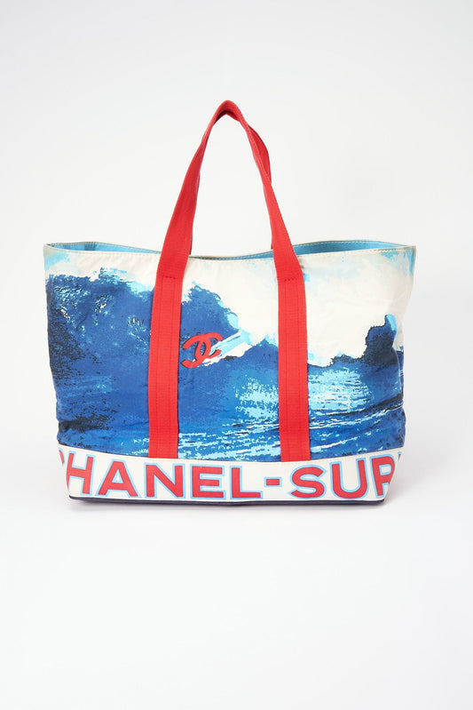 CHANEL Central Station Tote Bag Coated Canvas Red Beige Silver CC bs21321