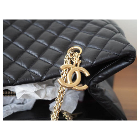 CHANEL Big COCO Mark Chain Tote Bag Caviar Skin Black Gold CC bs22057