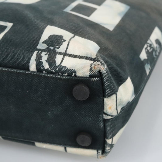 CHANEL Windows Tote Bag Canvas Gold Black CC 97017
