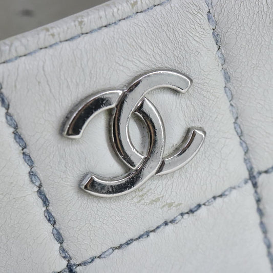 CHANEL Choco Bar Chain Tote Bag Leather White CC bs19700