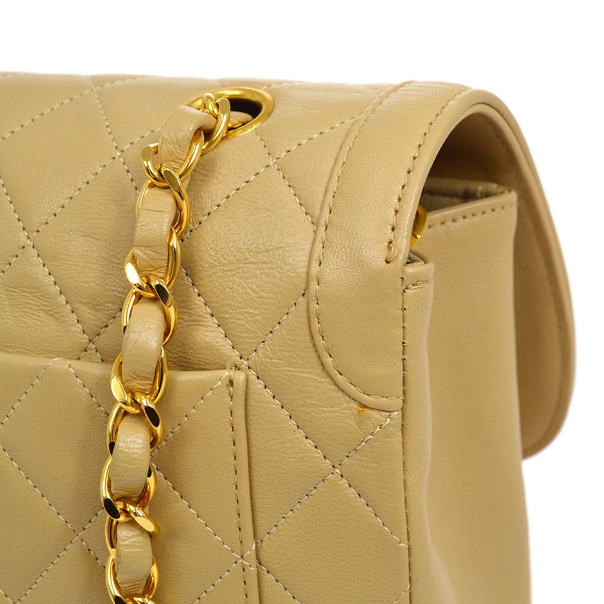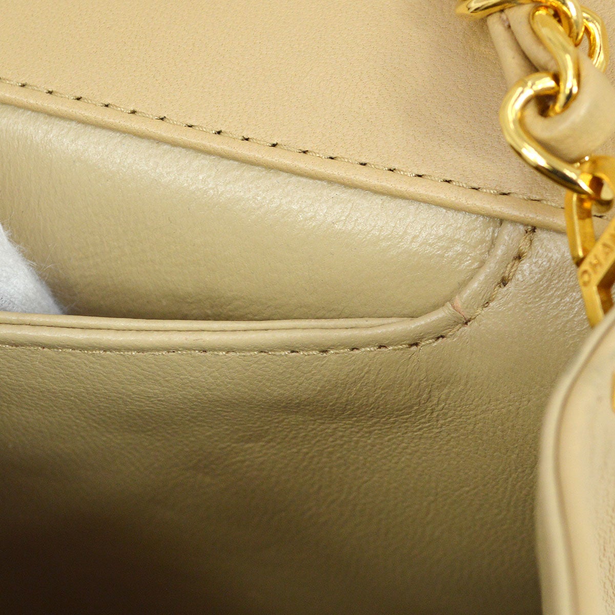 CHANEL Single Chain Shoulder Bag Beige Lambskin