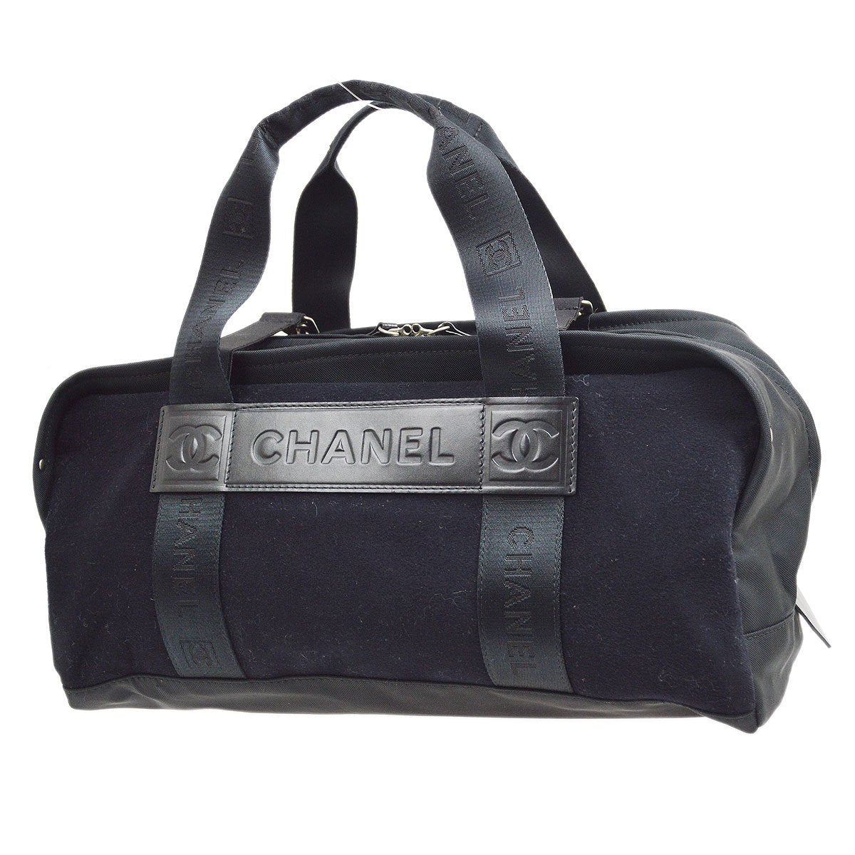 CHANEL Sport Line Boston Hand Bag Black Wool