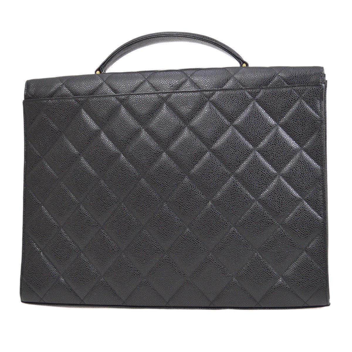 CHANEL Briefcase Business Hand Bag Black Caviar Skin